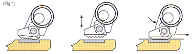 (Fig 1) Innovative gripping mechanism grips and releases strap with a vertical motion, providing increased holding power and reduced wear. |